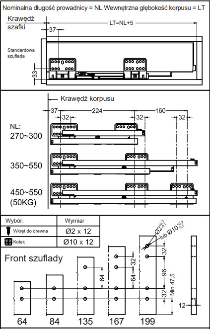 - Funkcje: pełny wysuw, cichy domyk