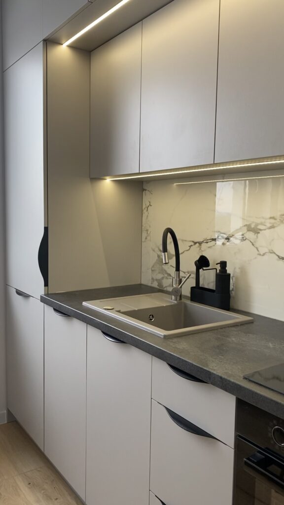 Kątowniki, podnośniki szafek górnych, prowadnice, wkręty, zawiasy.